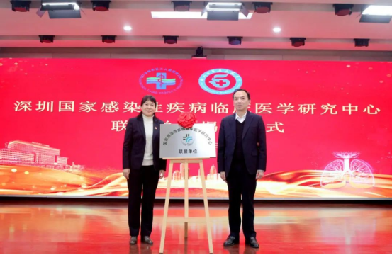 最后,李义平总会计师和赣州五院党委书记张金兰同志共同为“深圳国家感染性疾病临床医学研究中心联盟单位”揭牌,赣州五院院长吴海武同志为卢水华主任颁发“名誉主任”证书。