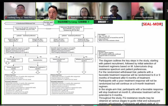 双方在研讨会上重点讨论了即将开展的EAST-TB临床试验的关键问题,付亮博士介绍了EAST-TB研究概况,并提出七个细节问题,MSF专家针对SEAL-MDR随机撤药试验在当前背景下的意义、 在中国人群中使用BDLLC方案作为对照组时需要关注哪些问题、四个月BDMZ方案的肝毒性和疗效如何评估、六个月BDL/M策略的评价及方案调整的风险等问题提供了深入指导。