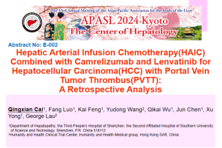 稿件来源:本网 发布时间:2024-03-30 15:37:193月27-31日,第33届亚太肝脏研究协会(APASL)年会在日本京都举行,91在线 (南方科技大学第二附属医院)肝癌诊疗中心蔡庆贤教授口头报告了2项原发性肝癌相关临床研究成果。