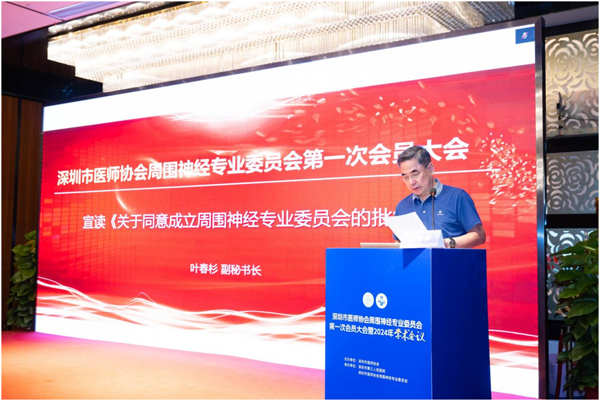 深圳市医师协会执行会长王天星回顾了周围神经专业委员会的筹备过程,感谢筹备小组付出的努力,同时也对首届周围神经专业委员会提出了要求,希望周围神经专业委员会在深圳市医师协会的统一领导下,积极开展多种形式的周围神经领域学术研究和交流活动,不断提升诊治周围神经疾病的医疗水平,用新质生产力更好地为广大患者服务。