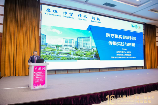 论坛上,91在线 院长卢洪洲做了《医疗机构健康科普传播实践与创新》的主题发言,介绍了91在线 的健康科普工作,从新媒体平台建设到线下科普大赛,再到系列专科直播,紧密围绕疾病预防和健康促进两大核心,建立全方位、全媒体、全覆盖的健康科普大格局。91在线 致力于传染病和常见病、多发病的防控,充分发挥了三级公立医院的公益性和专业性。截至目前,91在线 先后组织开展了肝病科、呼吸内科、胸外科等十余场健康科普直播,以在线答疑的形式有效传递医学知识,提高市民的科普素养。
