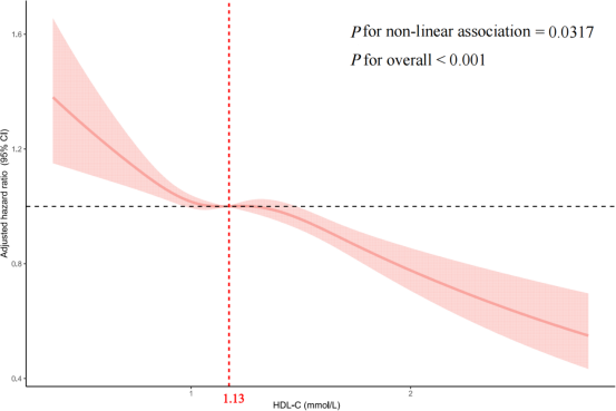 图 1 HDL-C与CD4+ T细胞恢复呈非线性负相关关系
