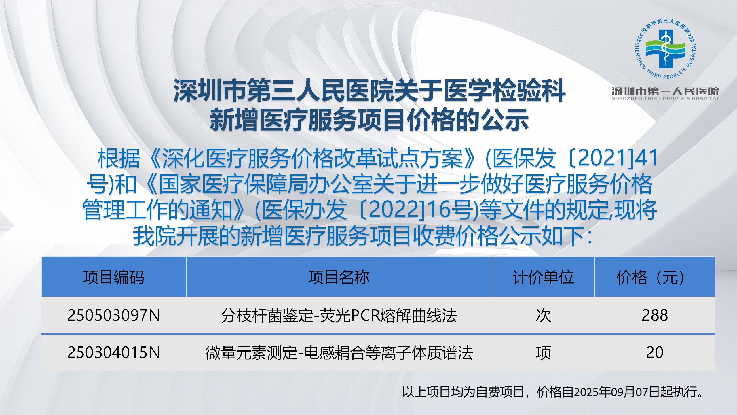 91在线 关于医学检验科新增医疗服务项目价格的公示